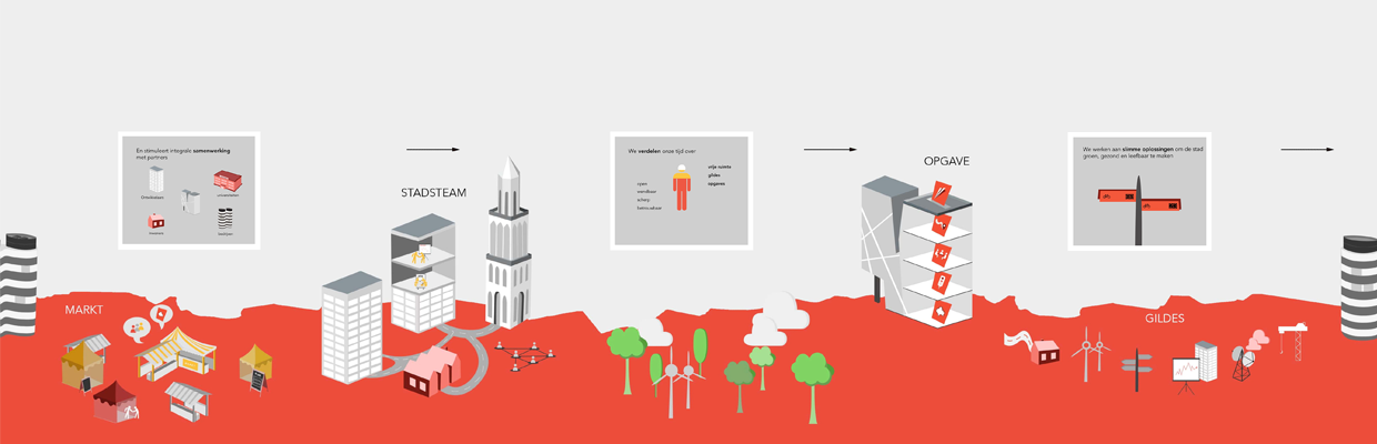 The municipality of Utrecht created a new way of working and it was required to communicate this to their employees. Instead of handing out a thick stack of paper the management wanted to explain their new way of working also in an original presentation. Together with the municipality of Utrecht it was decided that 360 virtual tour would suit best for this complicated explanation. The overall presentation represents the connections between partners where the videos will zoom in to the details of the community itself.