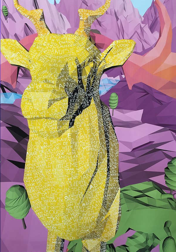 Telling stories is a visualization of a self created story assembled together with another student. This story is exhibit in a virtual tour where the deer walks you through the story. This exhibition became the experiment which later on resulted in a graphic poster.